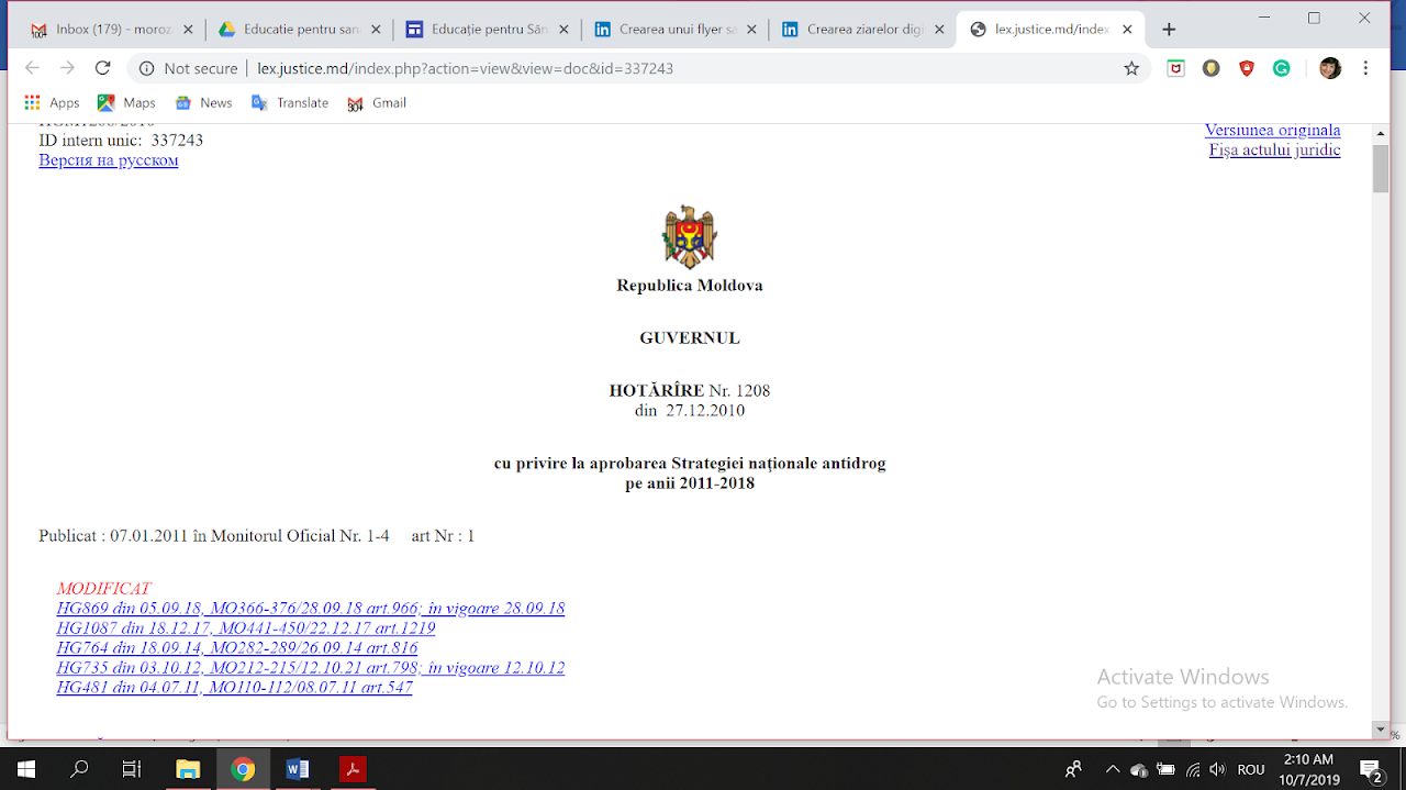 A. Mai jos găsești 5 acte legislative și normative, care reglementează comercializarea, circulaţia, controlul şi prevenirea consumului abuziv de substanţe nocive pe teritoriul Republicii Moldova. Selectează un document, lecturarea căruia îți trezește curiozitatea mai mare și studiază-l.
